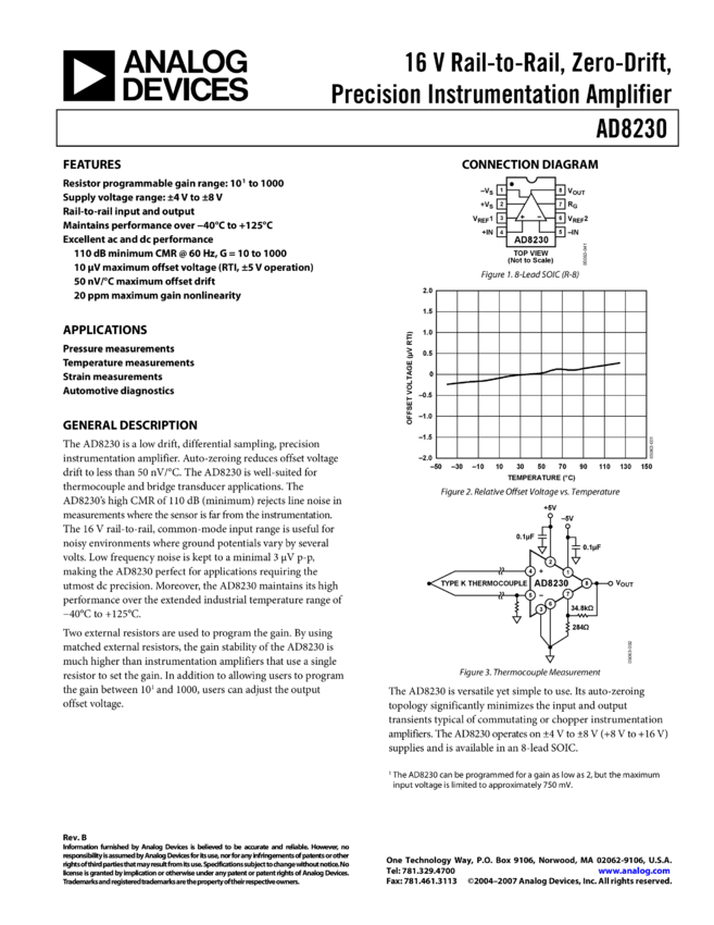 AD8230: 16 V Rail-to-Rail, Zero-Drift, Precision Instrumentation Amplifier