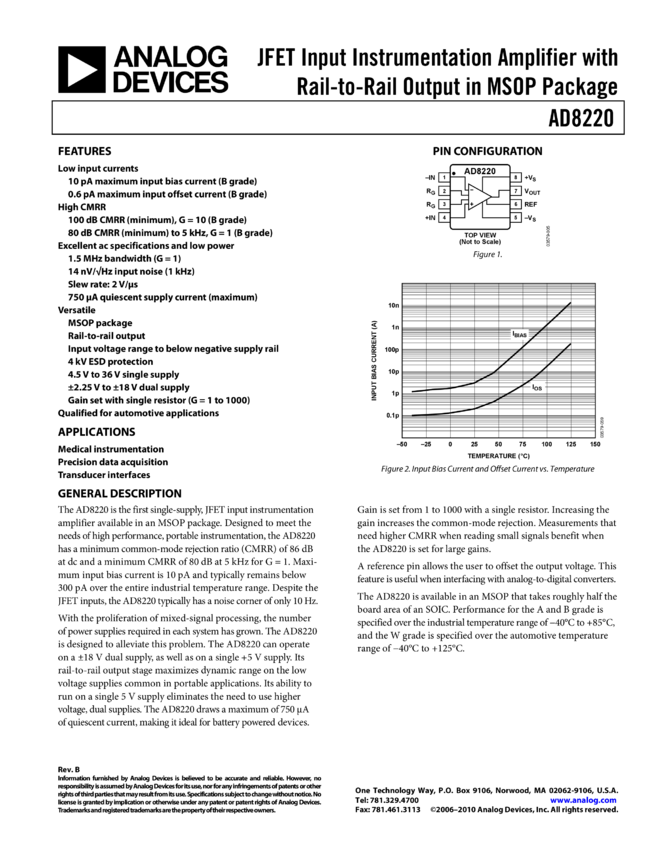 AD8220: JFET Input Instrumentation Amplifier with Rail-to-Rail Output