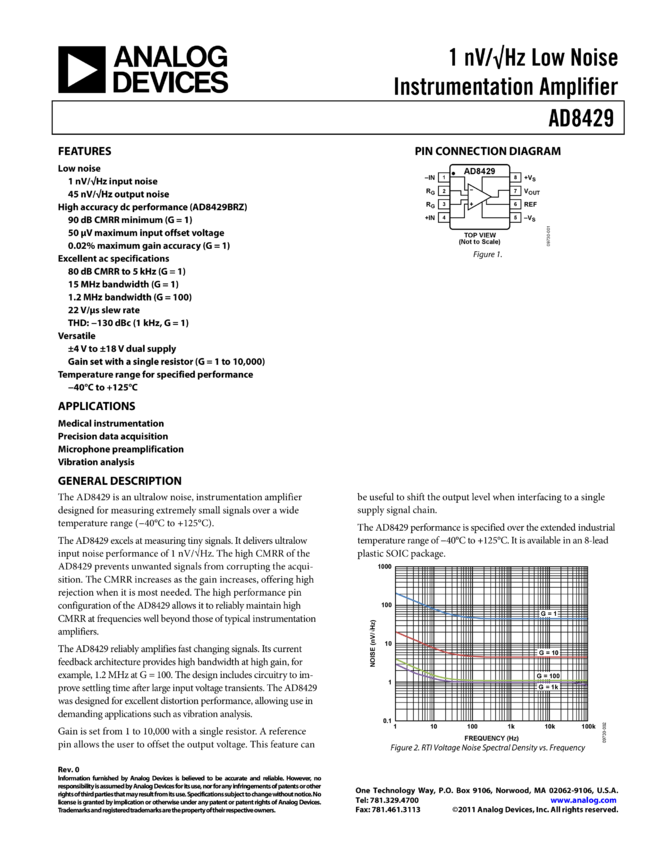 AD8429: 1V/√H Low Noise Instrumentation Amplifier