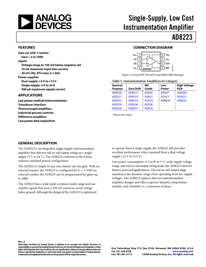 AD8223: Single-Supply, Low Cost Instrumentation Amplifier