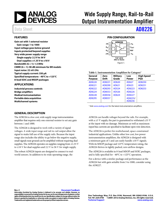 AD8226: Wide Supply Range, Rail-to-Rail Output Instrumentation Amplifier