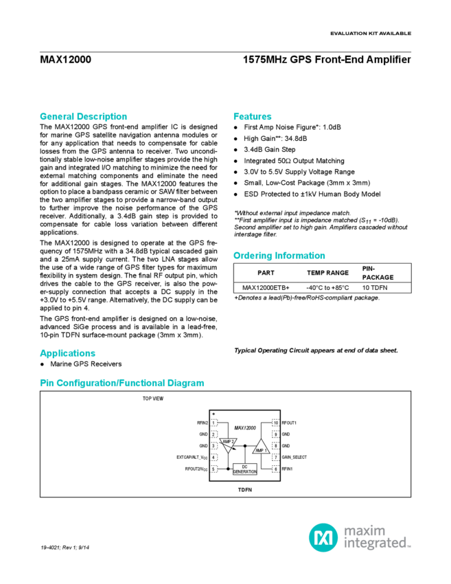MAX12000 Integration of Two Low-Noise GPS Amplifiers into a Smaller Package