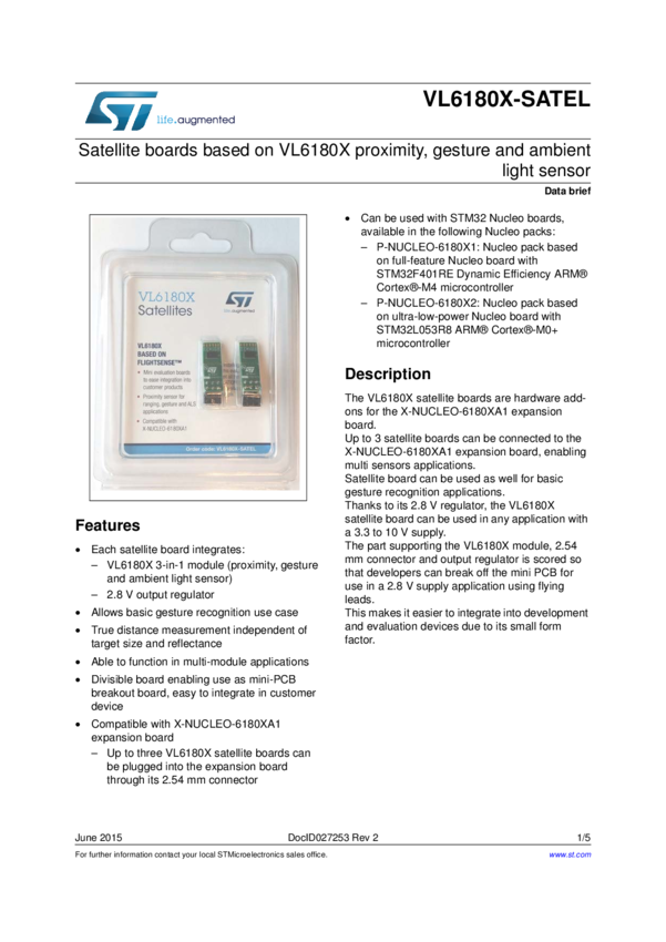 Satellite: mini-PCB with VL6180X for easy integration (compatible with VL6180X expansion boards)