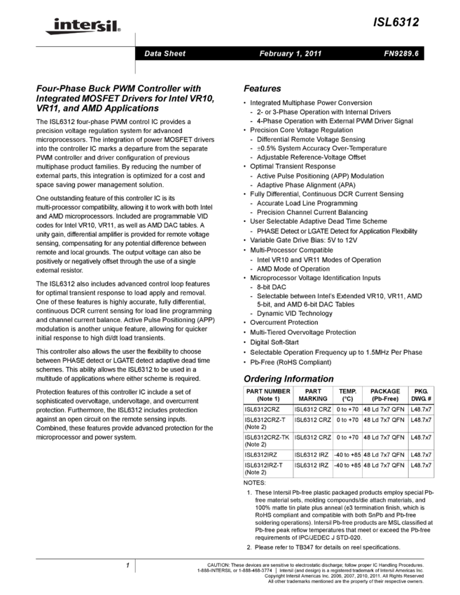 Four-Phase Buck PWM Controller with Integrated MOSFET Drivers and IC Interface for Intel VR10, VR11, and AMD Applications