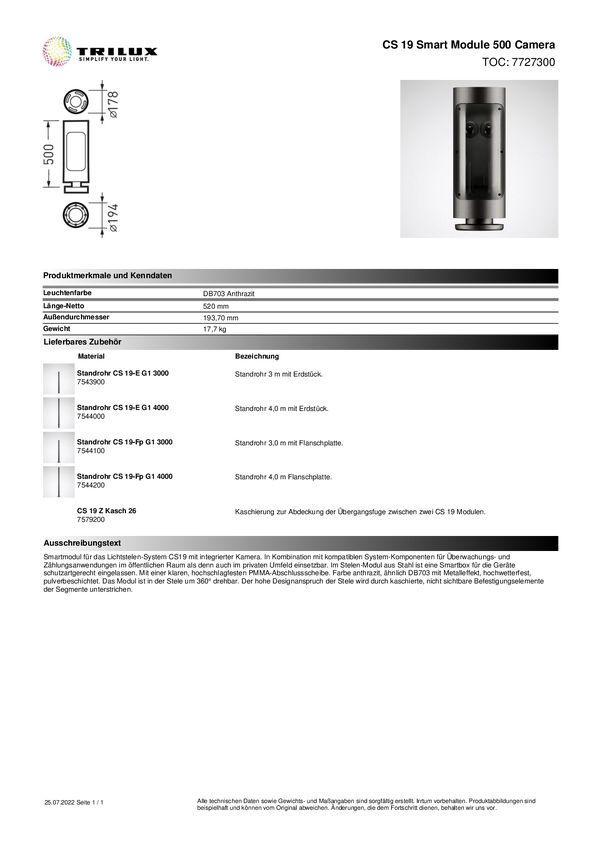 Trilux CS 19 Smart #7727300 7727300 Inteligentny przełącznik antracytowy