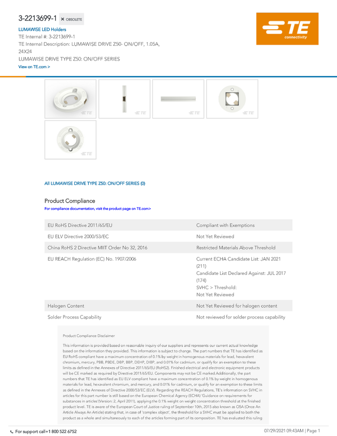 TE Connectivity 2-2213699-1 TE AMP LED Interconnectors, 1 szt.