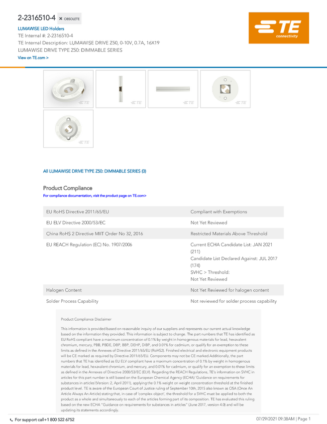 TE Connectivity 2316510-4 TE AMP LED Interconnectors, 1 szt.