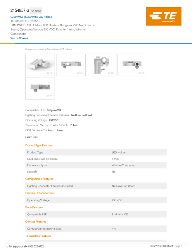 TE Connectivity 2154857-3 TE AMP LED Interconnectors, 1 szt.