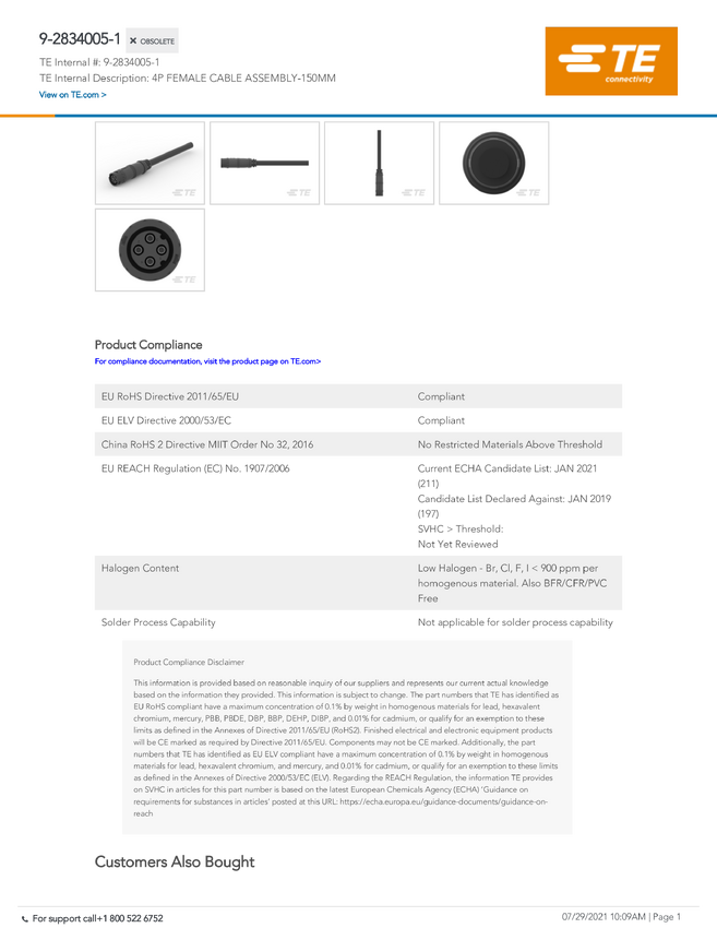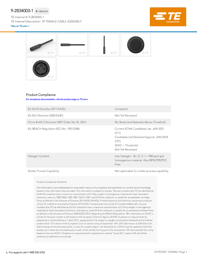 TE Connectivity 9-2834001-1 TE AMP LED Interconnectors, 1 szt.