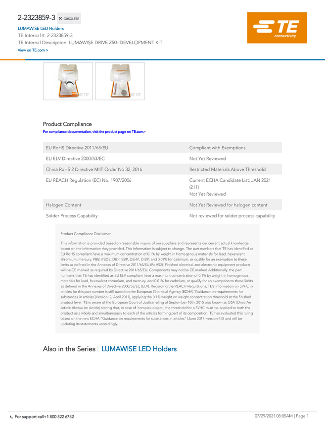 TE Connectivity 2-2323859-3 TE AMP LED Interconnectors, 1 szt.