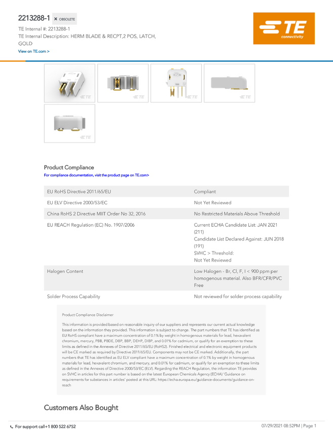 TE Connectivity 2213288-1 TE AMP LED Interconnects, 1 szt.