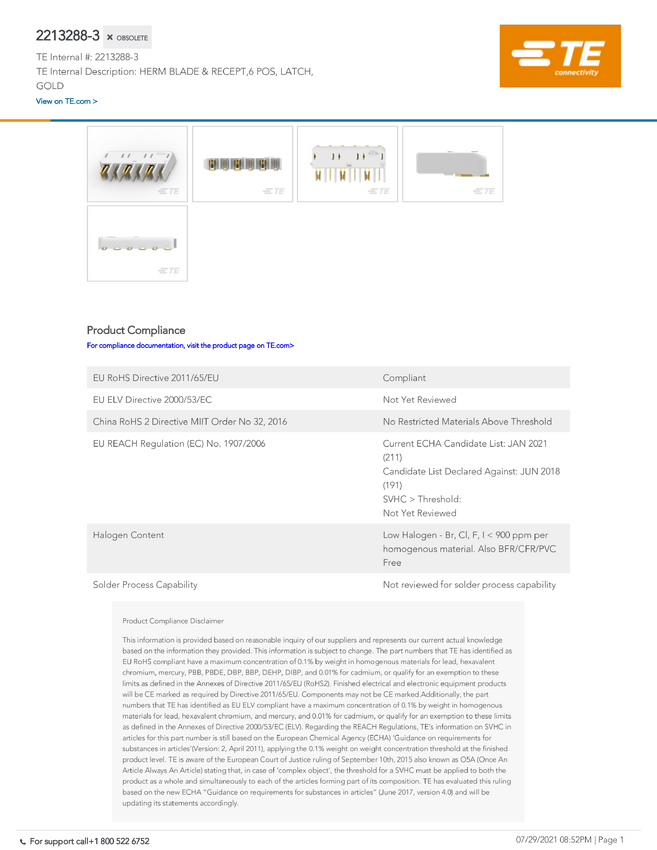 TE Connectivity 2213288-3 TE AMP LED Interconnects, 1 szt.