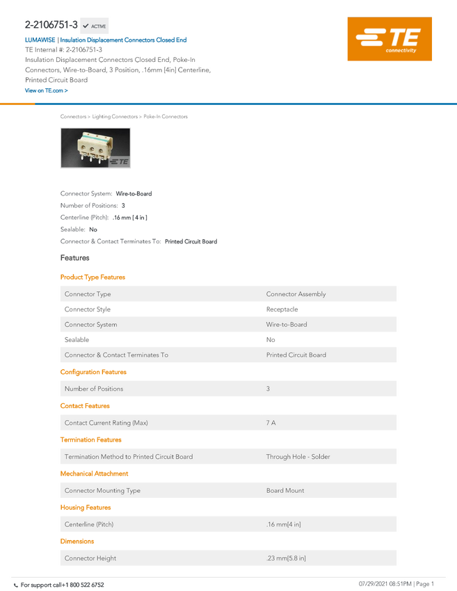TE Connectivity 2-2106751-3 TE AMP LED Interconnects, 1 szt.