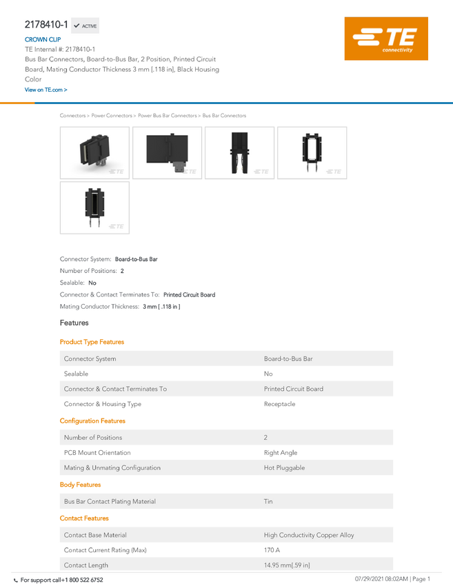 TE Connectivity 2178410-1 TE AMP Bus Bar Interconnects, 1 szt.