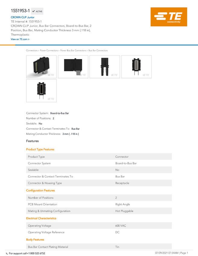 TE Connectivity 1551953-1 TE AMP Bus Bar Interconnects, 1 szt.