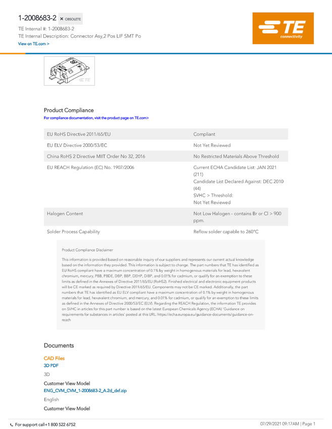 TE Connectivity 1-2008683-2 TE AMP LED Interconnects, 1 szt.