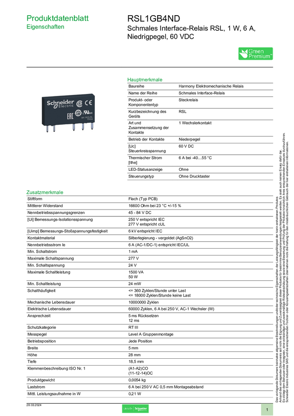 Schneider Electric RSL1GB4ND Przekaźnik interfejsowy