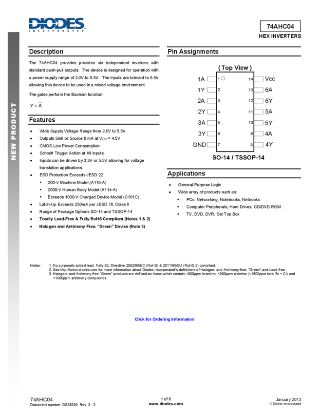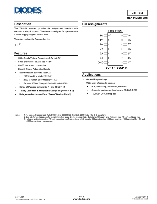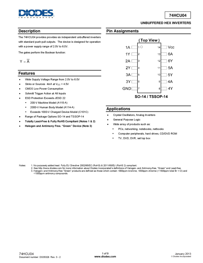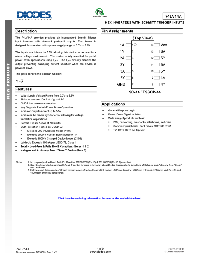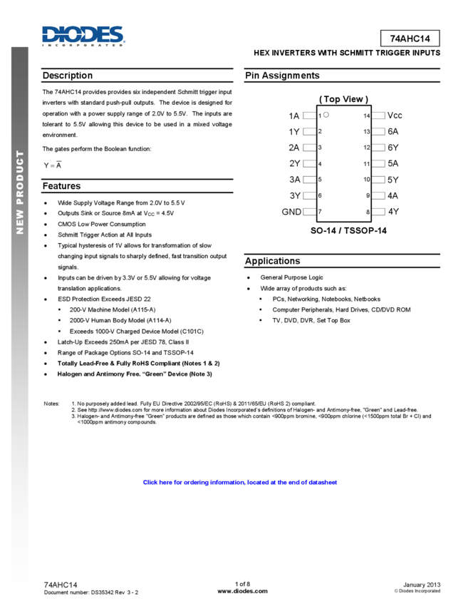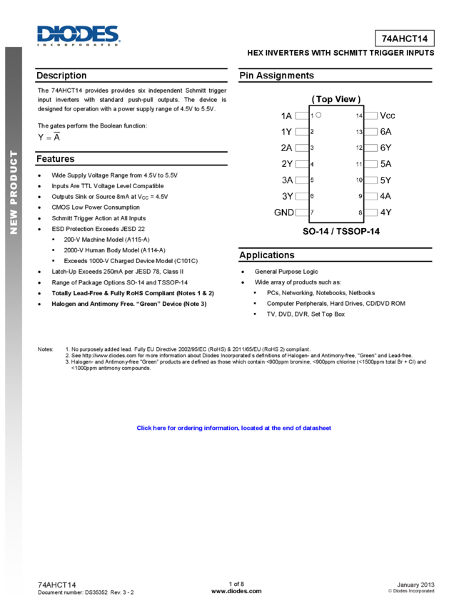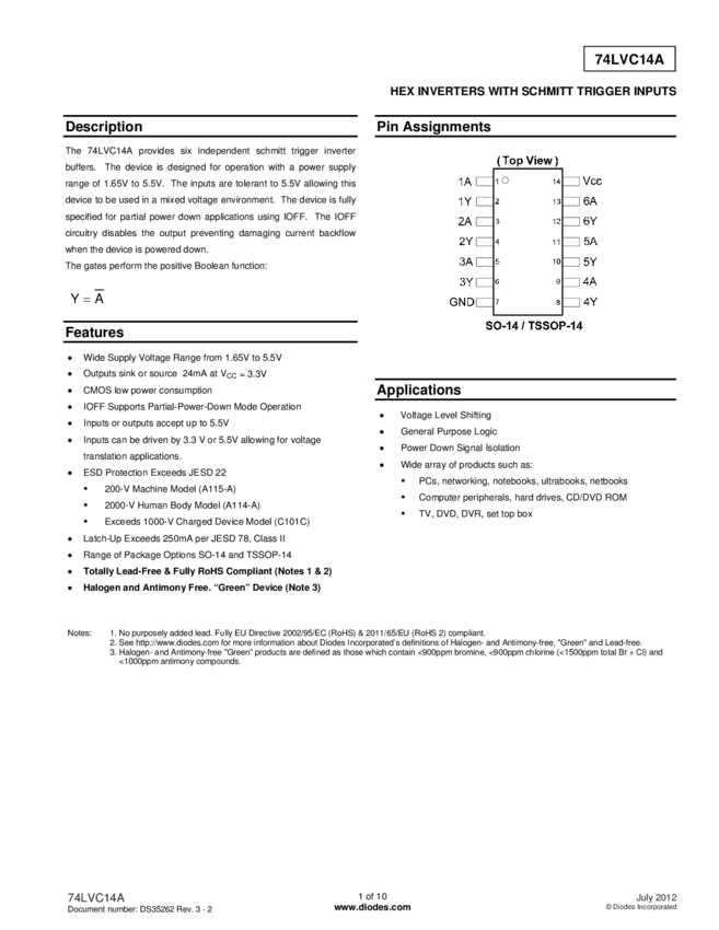 HEX INVERTERS WITH SCHMITT TRIGGER INPUTS