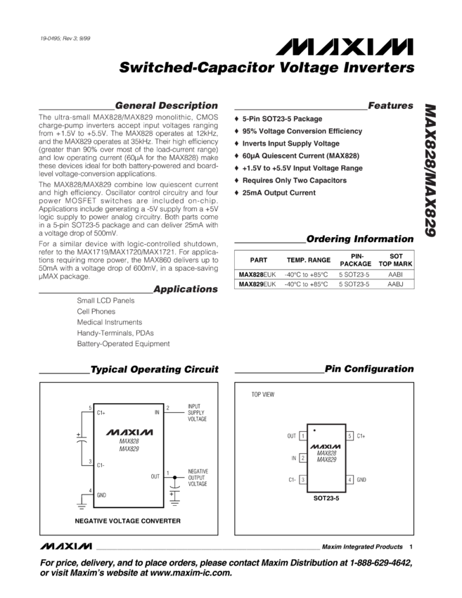 MAX828, MAX829 Switched-Capacitor Voltage Inverters