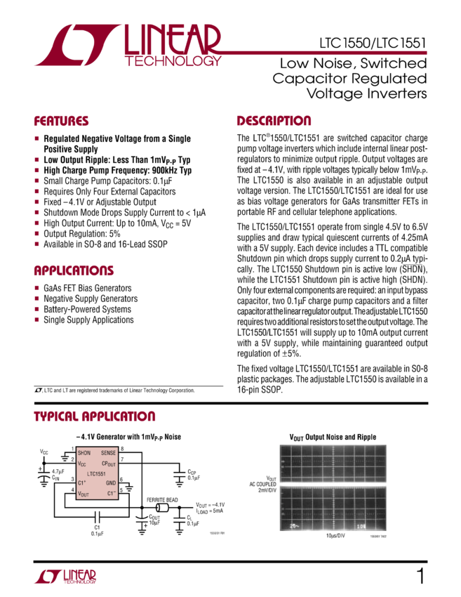 Low Noise, Switched Capacitor Regulated Voltage Inverters