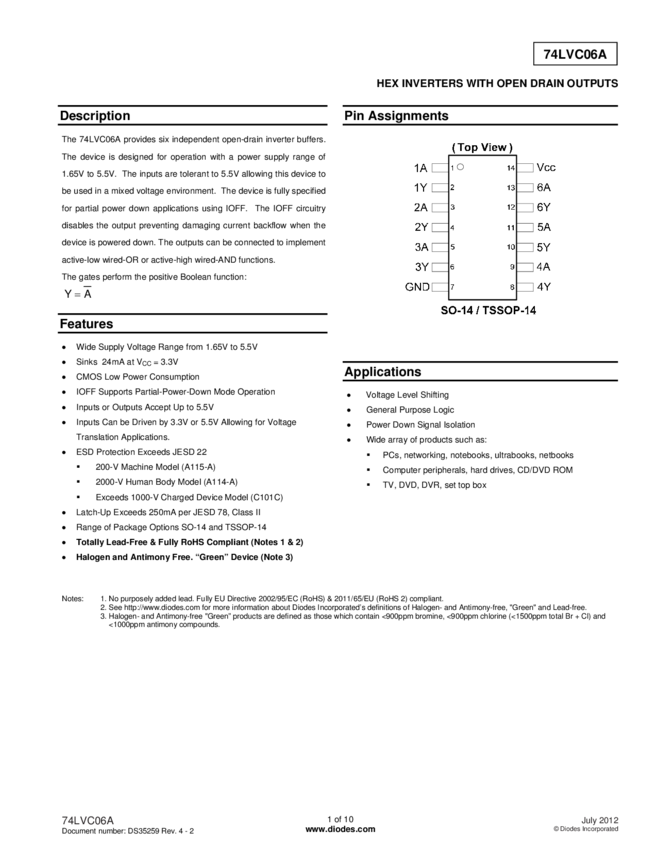 HEX INVERTERS WITH OPEN DRAIN OUTPUTS