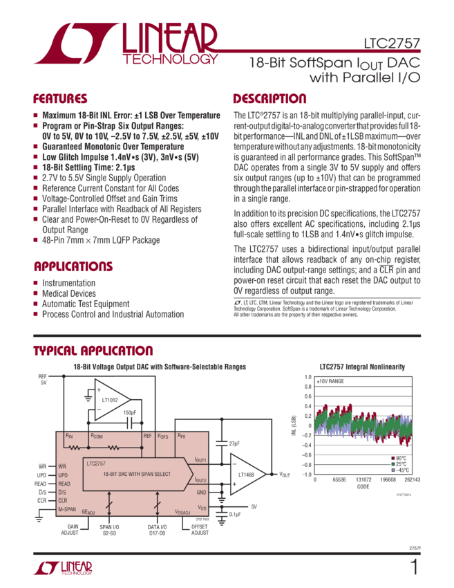 18-Bit SoftSpan IOUT DAC with Parallel I/O