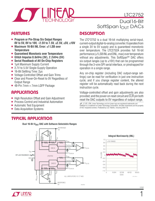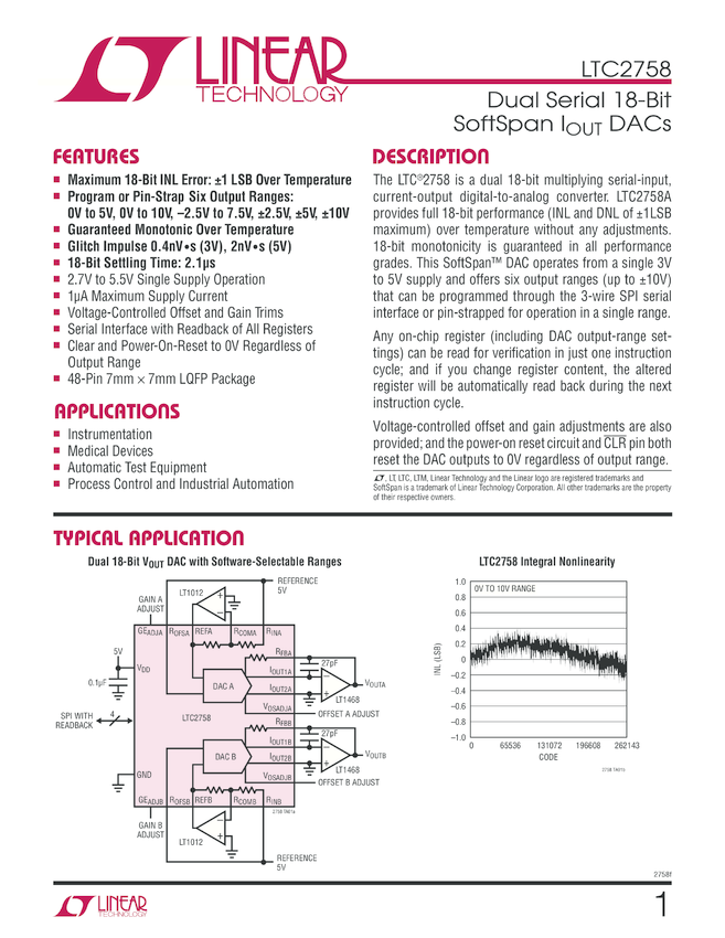 Dual Serial 18-Bit SoftSpan IOUT DACs