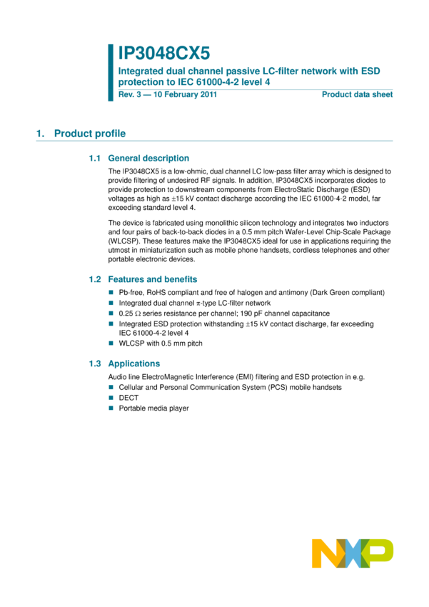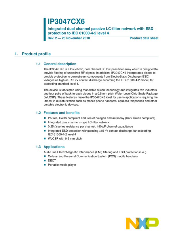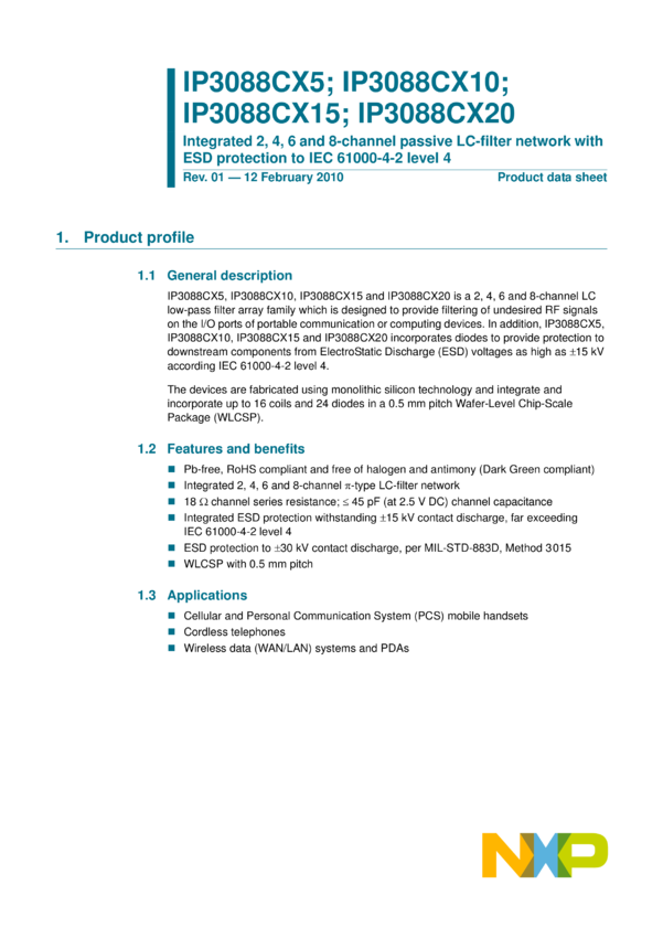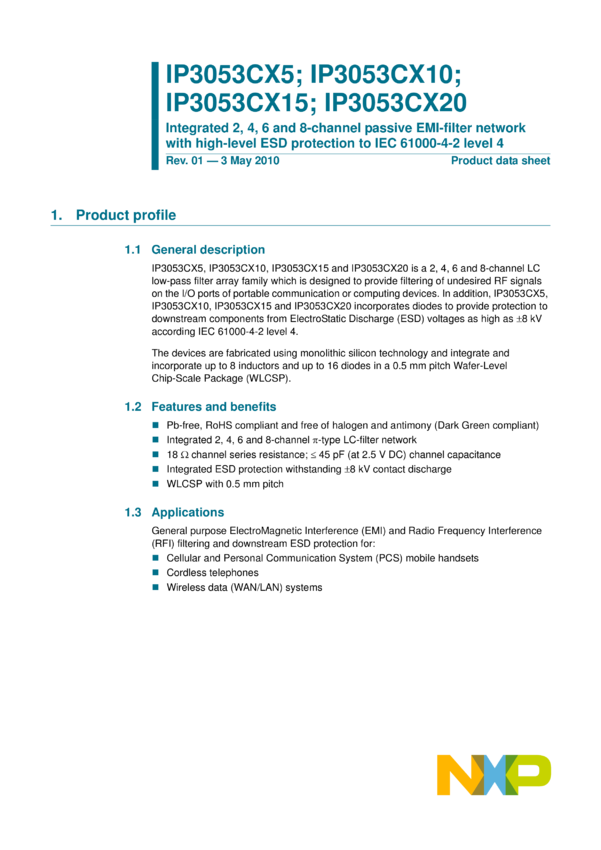 Integrated 2, 4, 6 and 8-channel passive EMI-filter network with high-level ESD protection to IEC 61000-4-2 level 4