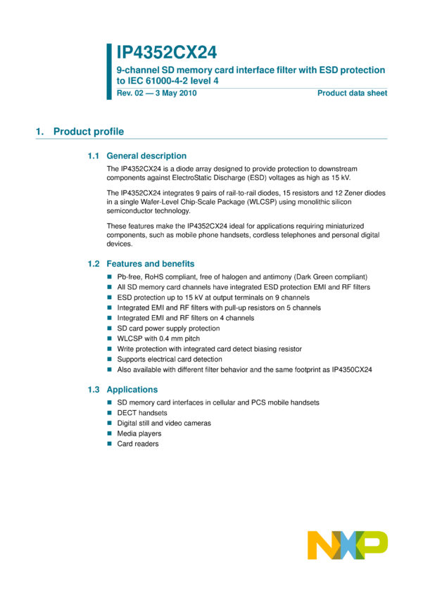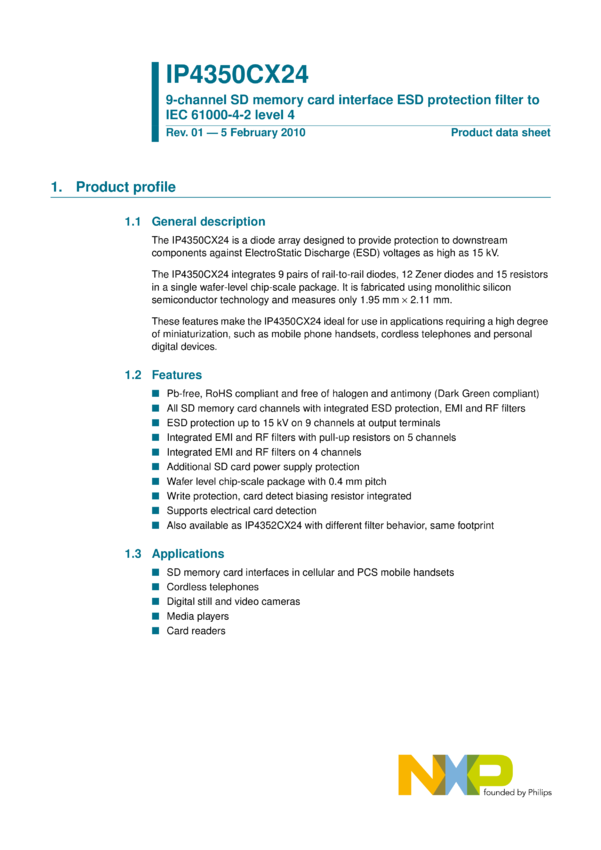 9-channel SD memory card interface ESD protection filter to IEC 61000-4-2 level 4