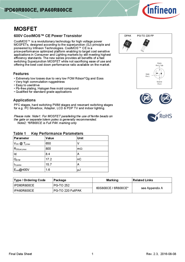 Trans MOSFET N-CH 650V 5.6A 3-Pin TO-220 Tube
