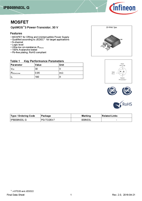 Trans MOSFET N-CH 30V 180A 7-Pin TO-263 T/R