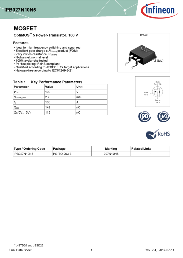 Trans MOSFET N-CH 100V 120A 3-Pin TO-263 T/R