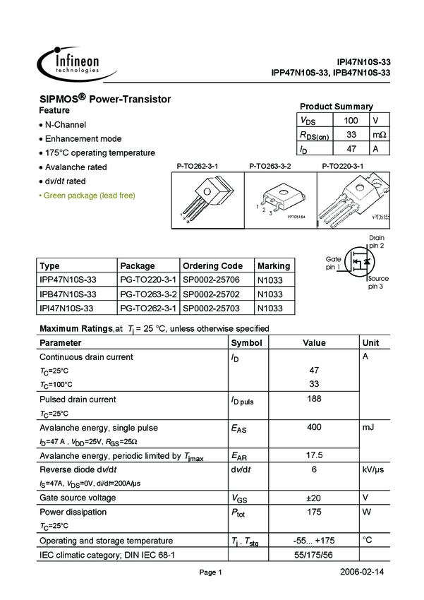 Trans MOSFET N-CH 100V 47A 3-Pin TO-263 T/R