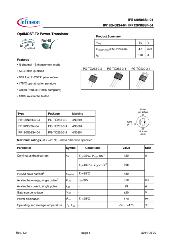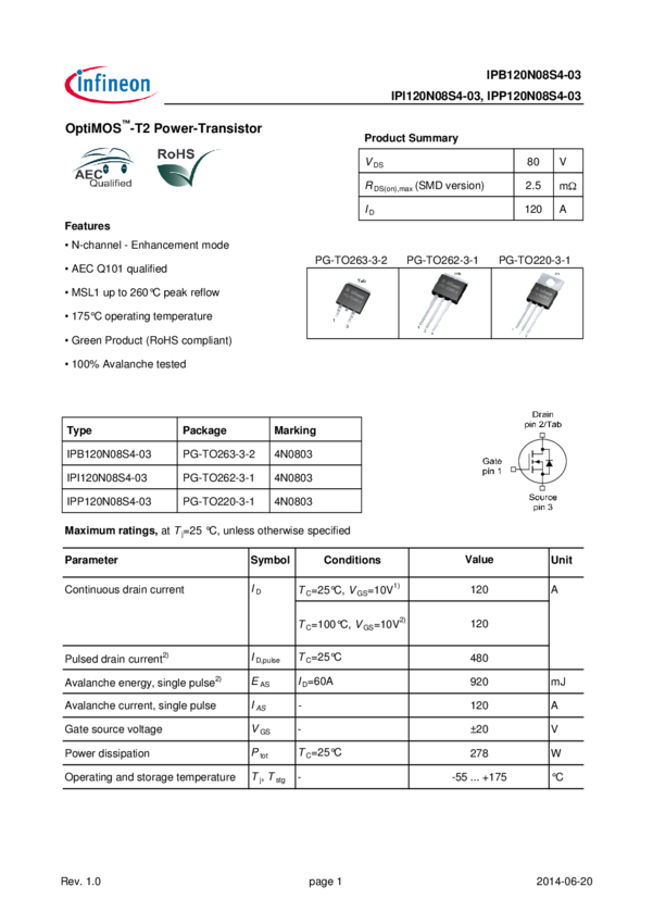 Trans MOSFET N-CH 80V 120A 3-Pin TO-263 T/R
