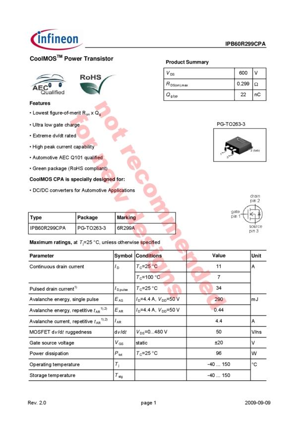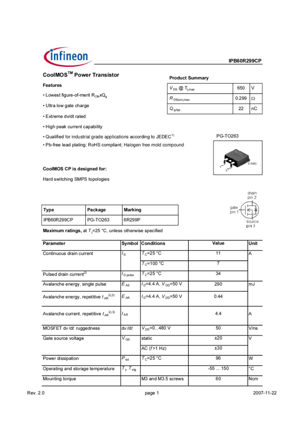 Trans MOSFET N-CH 650V 11A 3-Pin TO-263 T/R