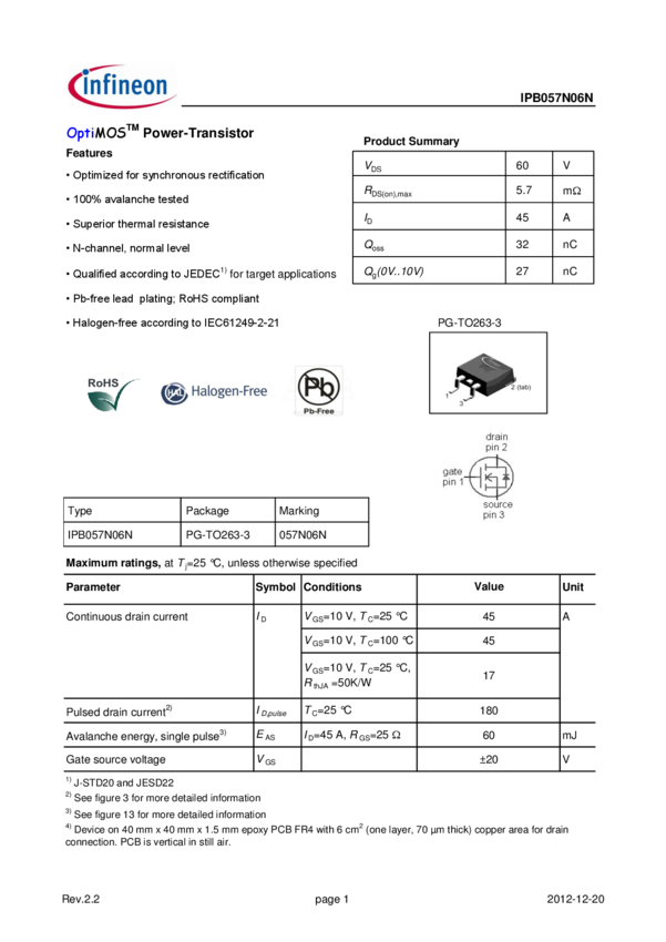 Trans MOSFET N-CH 60V 45A 3-Pin TO-263 T/R