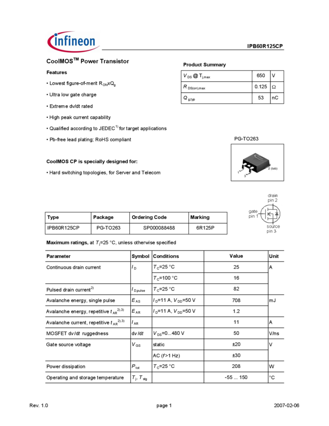 Trans MOSFET N-CH 650V 25A 3-Pin TO-263 T/R