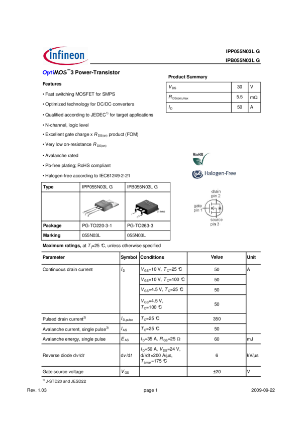 Trans MOSFET N-CH 30V 50A 3-Pin TO-263 T/R