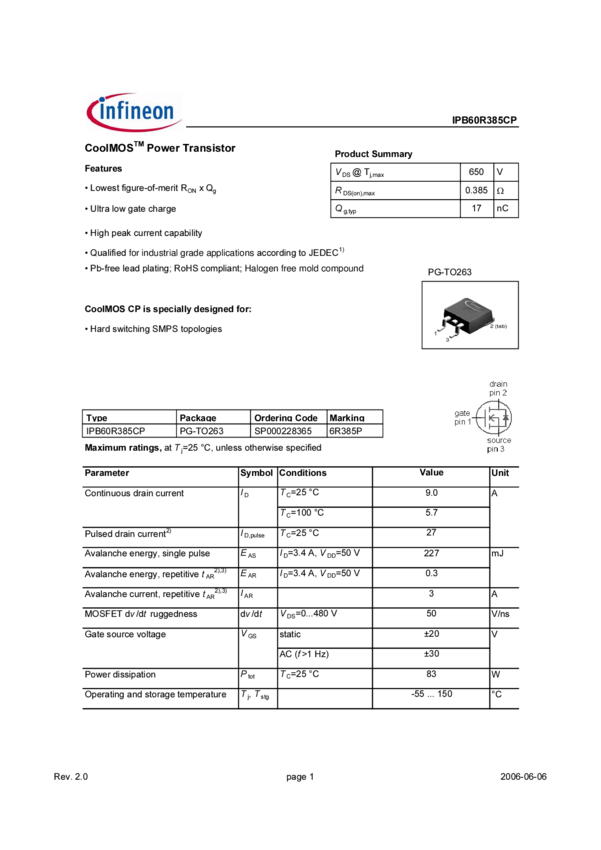 Trans MOSFET N-CH 650V 9A 3-Pin TO-263 T/R