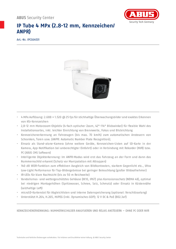 Kamera monitoringu IP ABUS IPCS64511A LAN 2688 x 1520 px