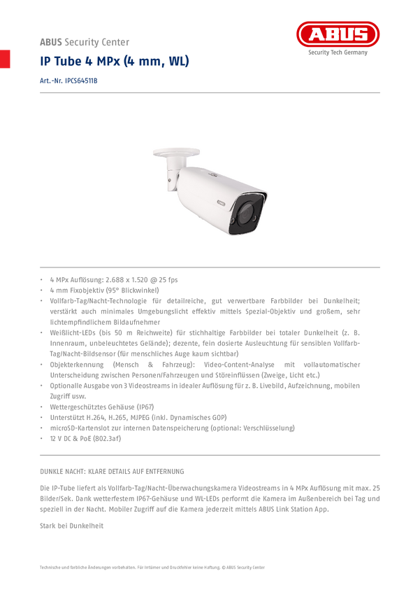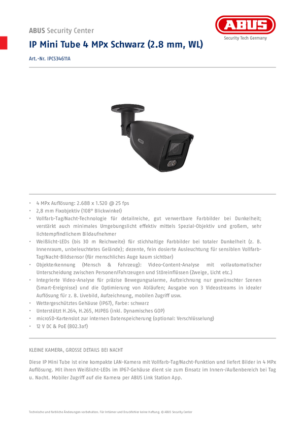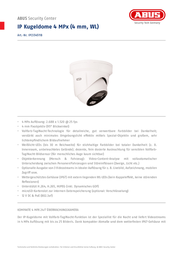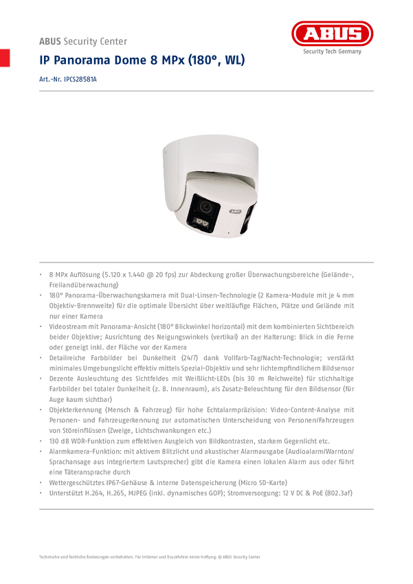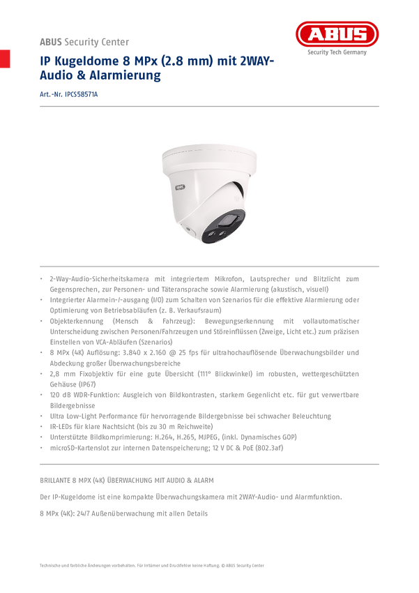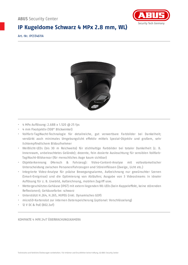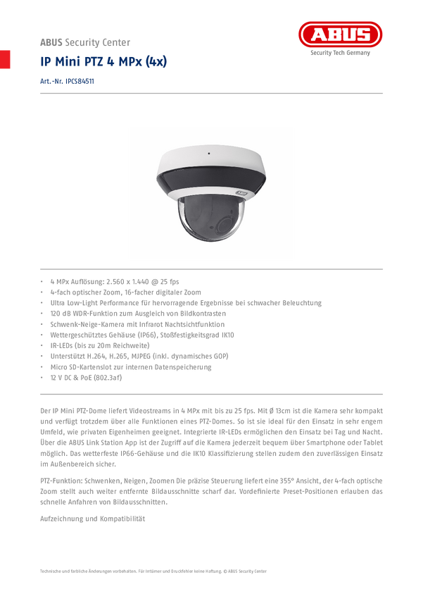 Kamera monitoringu ABUS IPCS84511, 1 szt.