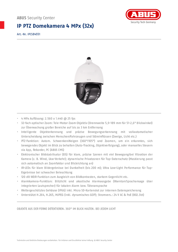 Kamera monitoringu ABUS IP PTZ 4 MPx (25x) IPCS84532, 1 szt.