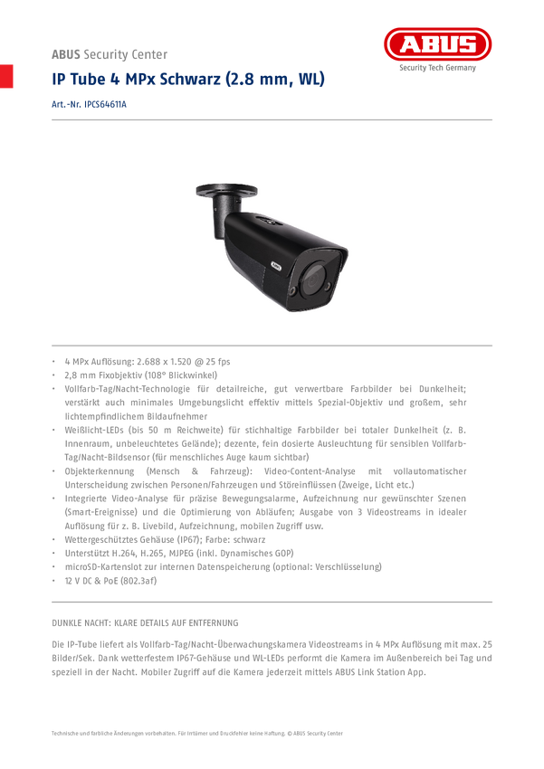 Kamera monitoringu IP ABUS IPCS64611A LAN 2688 x 1520 px
