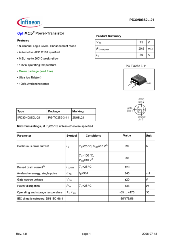 IPD30N08S2L-21