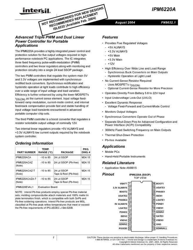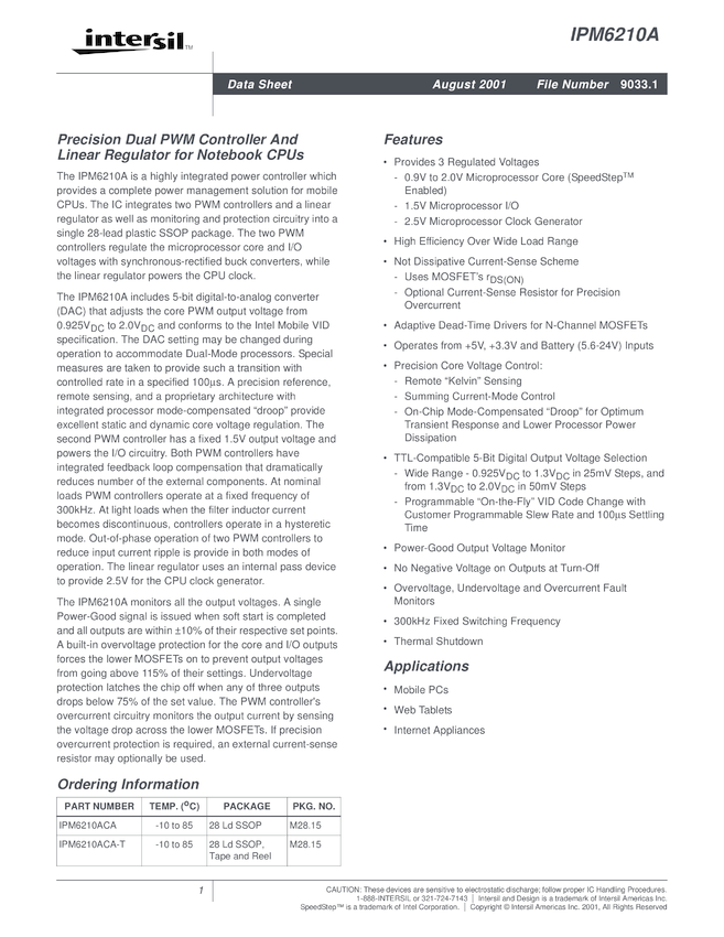Precision Dual PWM Controller And Linear Regulator for Notebook CPUs