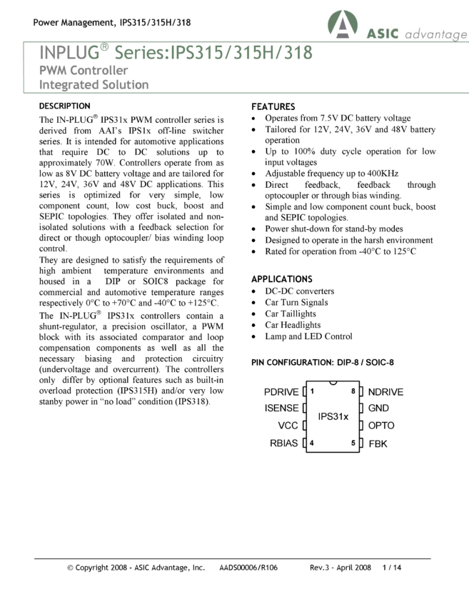 39V, 5A, Intelligent Power Switch High Side, SO-8