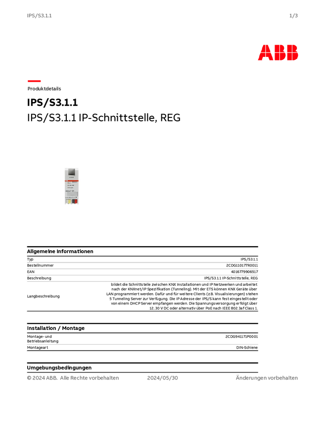 ABB 2CDG110177R0011 IPS/S3.1.1 Jednostka sterująca