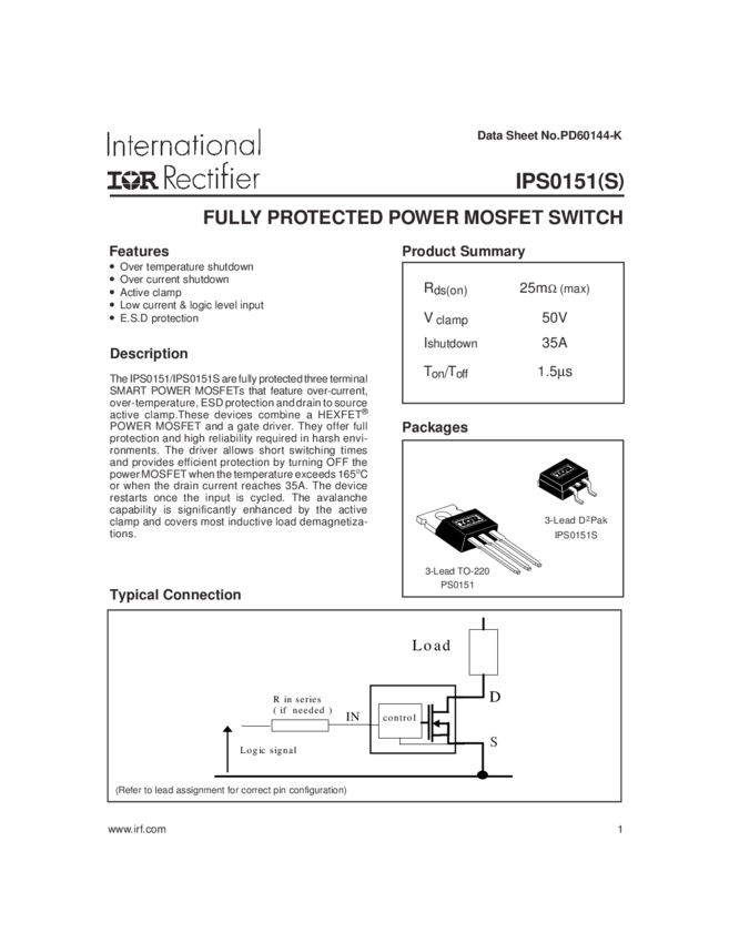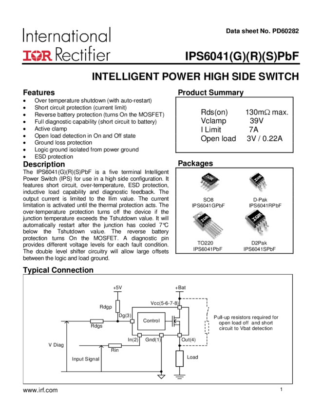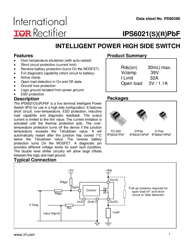 39V, 60A, Intelligent Power Switch High Side, TO-220-5