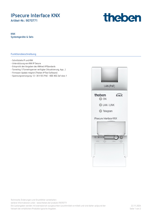 Interfejs Theben 9070771 IPSecure-Interface KNX