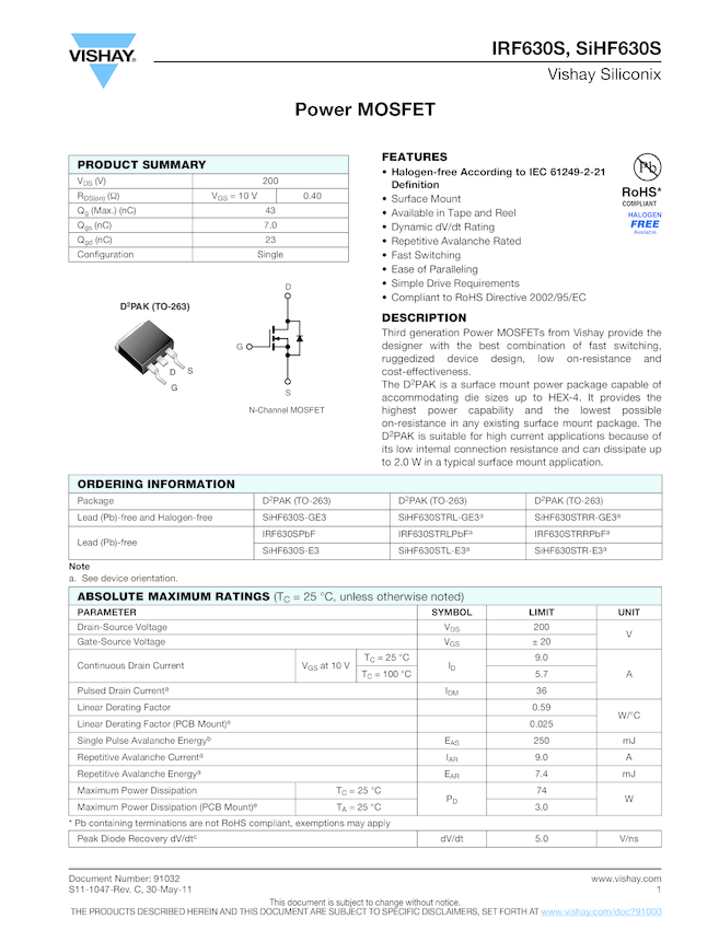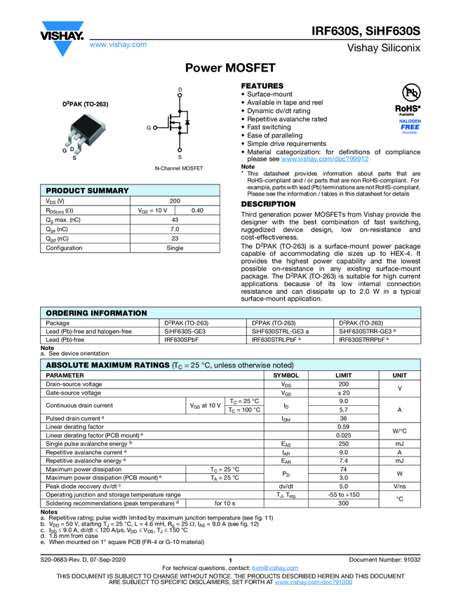 Tranzystor N-MOSFET, 9A, 200V, TO220